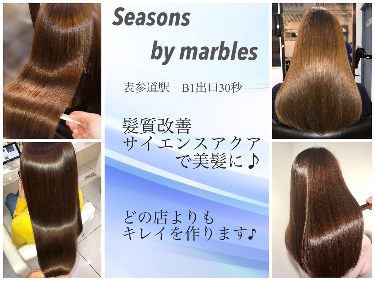 表参道駅B1出口徒歩30秒 美髪サロンで大人気のseasons by marblesです。