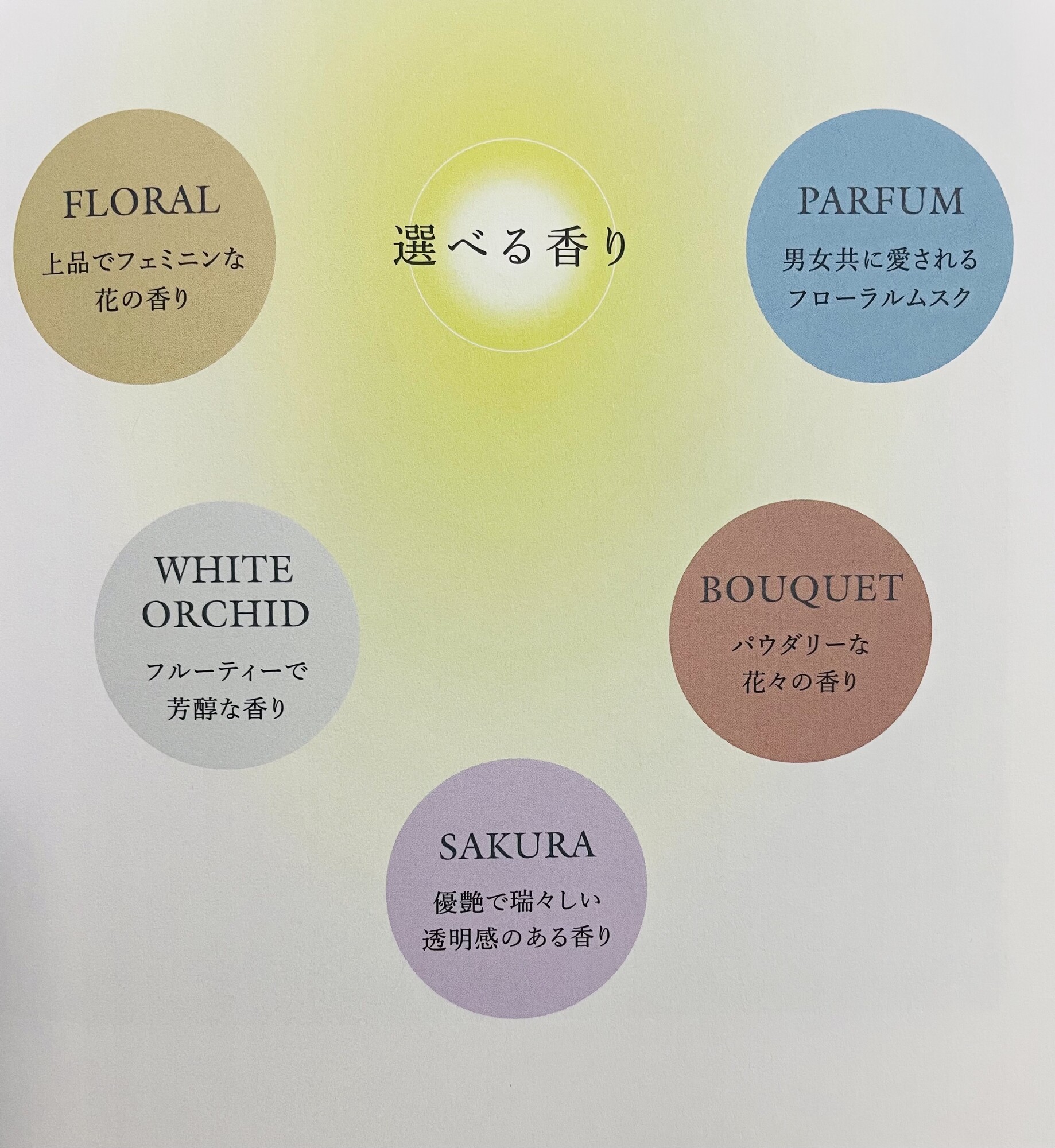 オーガニックノートは香りが選べます。人気香水の香りで、気分に合わせてお好きな香りを選び、シャンプーする度にリラックスできます。